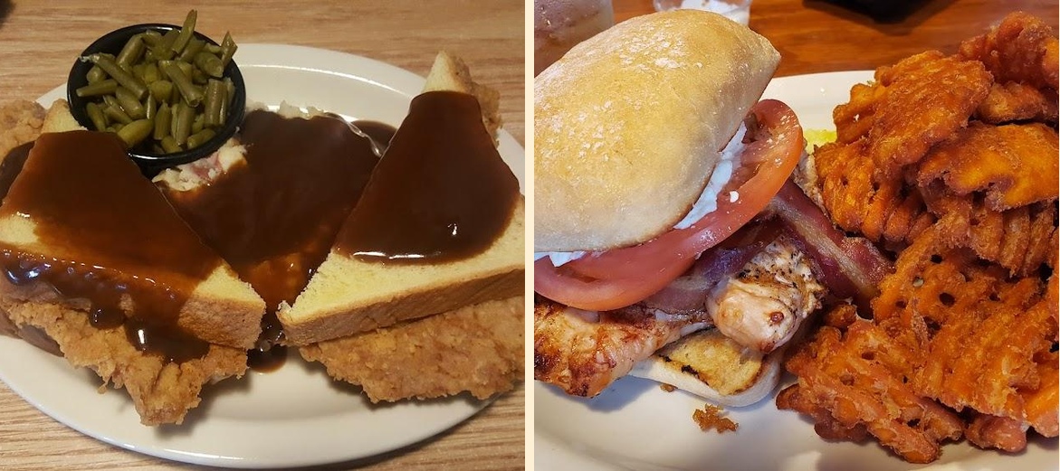 Must-try dishes include Fried Green Beans, Southwest Egg Rolls, Buffalo Shrimp, and the 8 Oz Ribeye steak. The homemade chicken fried steak also stands out on Sundays.